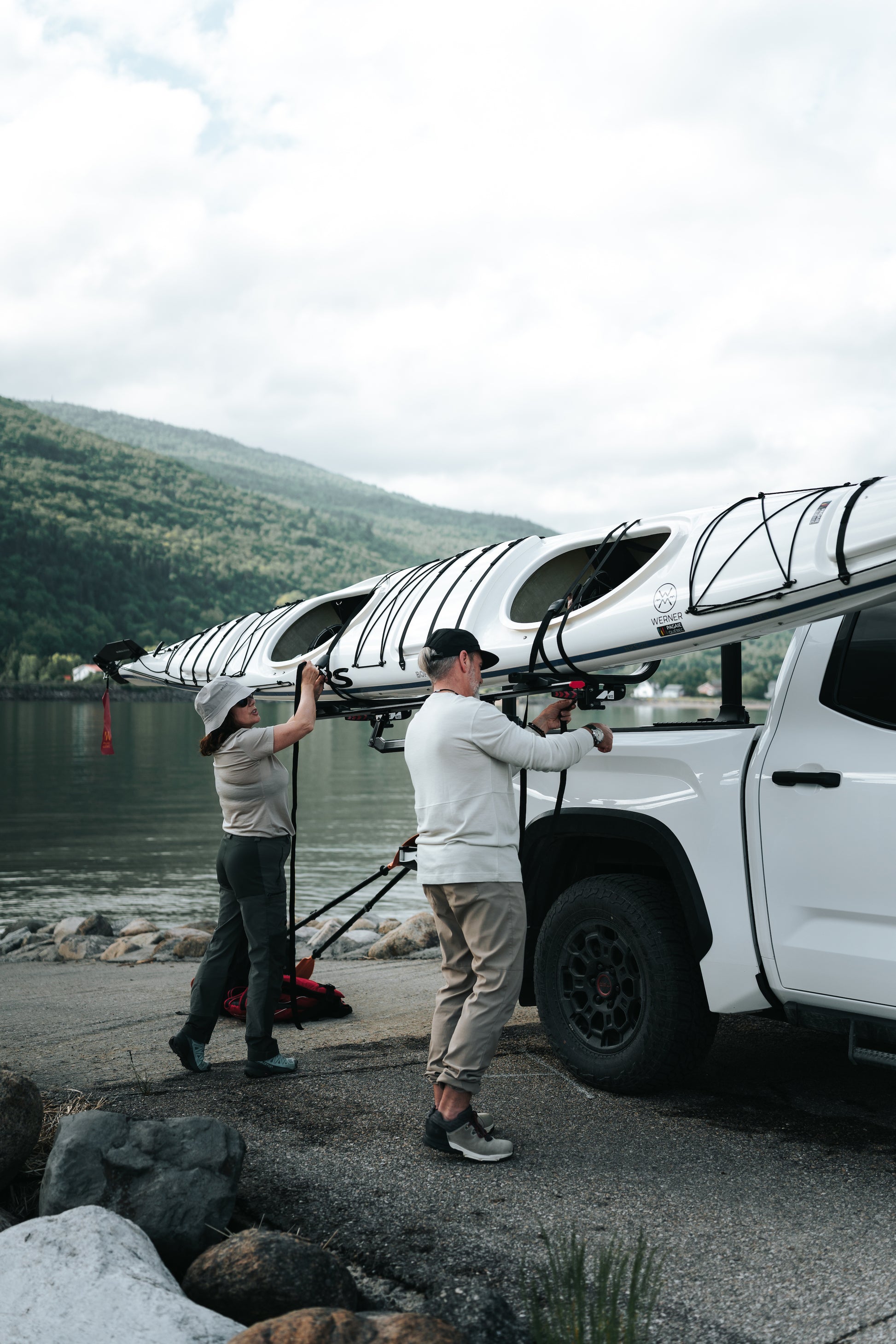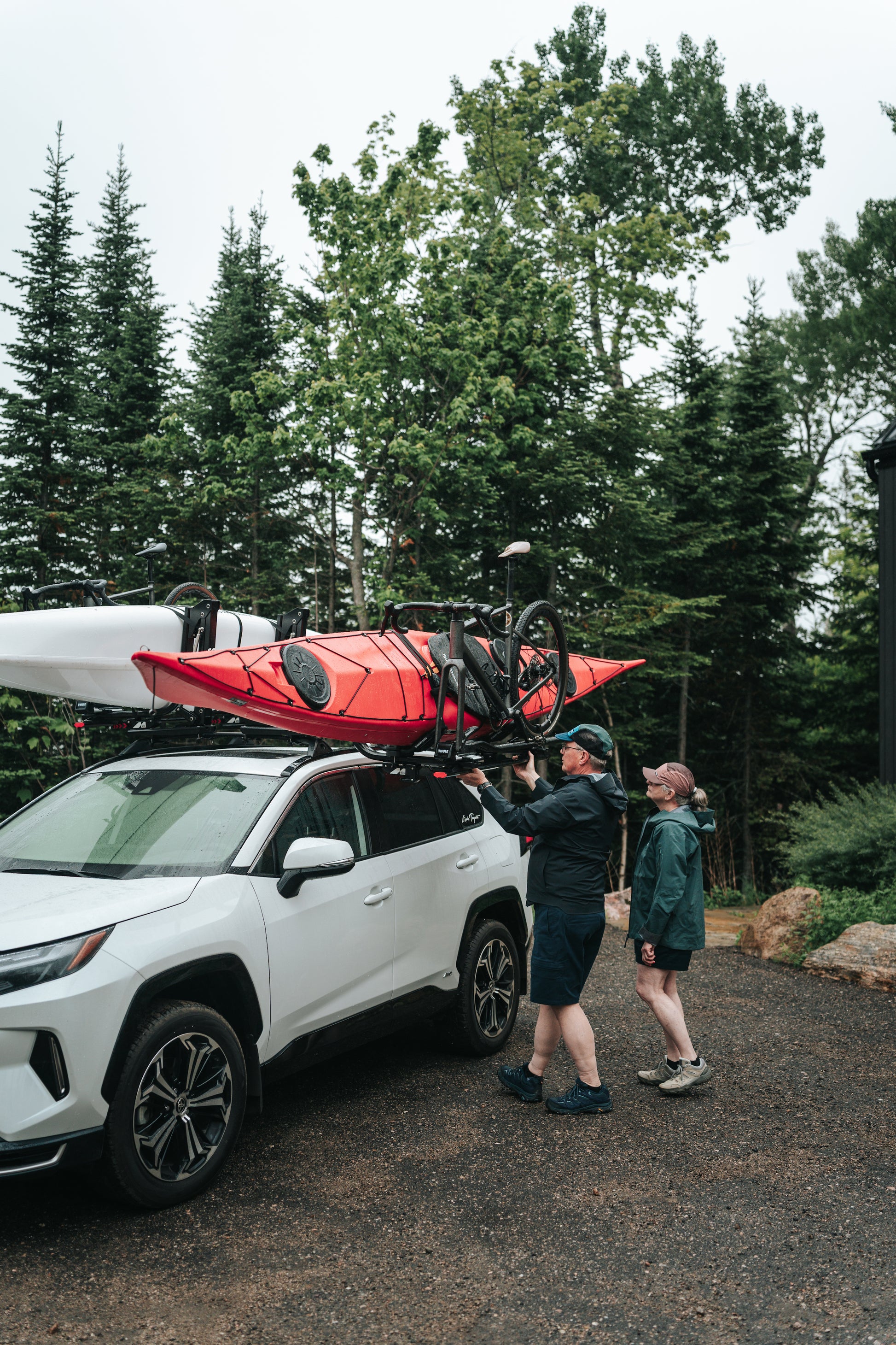 • 1 ou 2 kayaks (les kayaks, canots et planches à pagaie peuvent être transportés directement sur le MOS UpLift ou à l’aide de berceaux de transport)